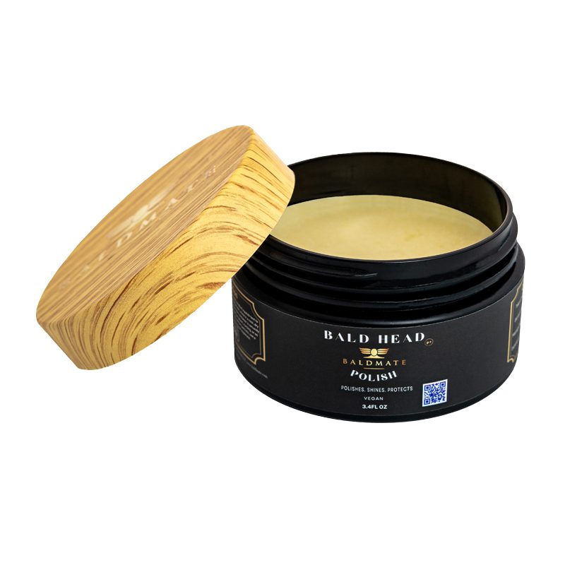 BaldMate’s Bald Head Polish – an elixir of natural brilliance for your distinguished scalp. Immerse your bald beauty in the richness of Organic Shea, Coconut, and Jojoba Oils, fused with nourishing Cocoa Butter. Enhanced with Zinc Oxide and Red Raspberry Seed Oil, it offers sun-kissed protection. Aloe Vera and Vitamin E provide soothing hydration. Crafted with Gluconolactone and Sodium Benzoate for gentle preservation. The aromatic blend of Peppermint and Lavender Essential Oils elevates your grooming ritual. Embrace the radiant glow with BaldMate’s Bald head polish – where each application is a celebration of your well-nurtured and polished bald head.