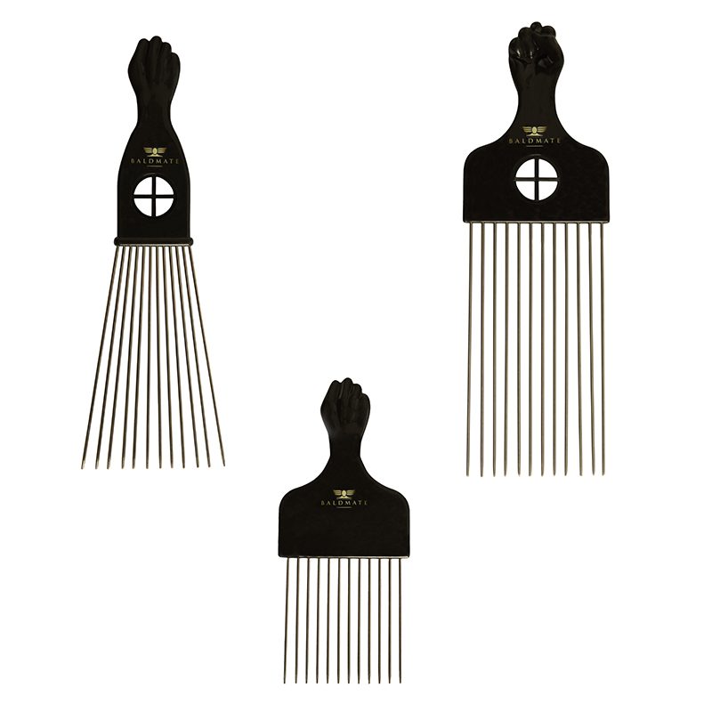 Embark on grooming mastery with our uniquely crafted Classic Black Fist beard comb. Its charming comb handle complements a durable metal pick ensconced in a black plastic handle. Tailored for curly or afro beard styles, it navigates through long, thick, and tangled beards effortlessly. The reinforced teeth, generously spaced, promise effective detangling. The polished metal teeth strike a harmonious balance—robust yet tender—ushering in a traditional and natural beard style effortlessly. Elevate your grooming ritual with this distinctive metal beard comb.