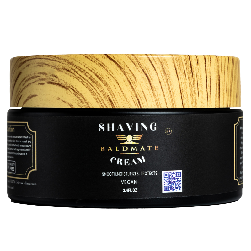 Direction: Wet your bald head and face with warm water to open pores. Apply a small amount of shaving cream. Use a shaving brush or your fingers to lather the cream on your face in circular motions. (Check out our shaving skit). Shave in the direction of hair growth for a smoother and comfortable experience. Rinse your face thoroughly with cold water and pat dry with a clean towel. Finish with your Baldmate aftershave and other moisturizing products for a refreshing and soothing effect.
